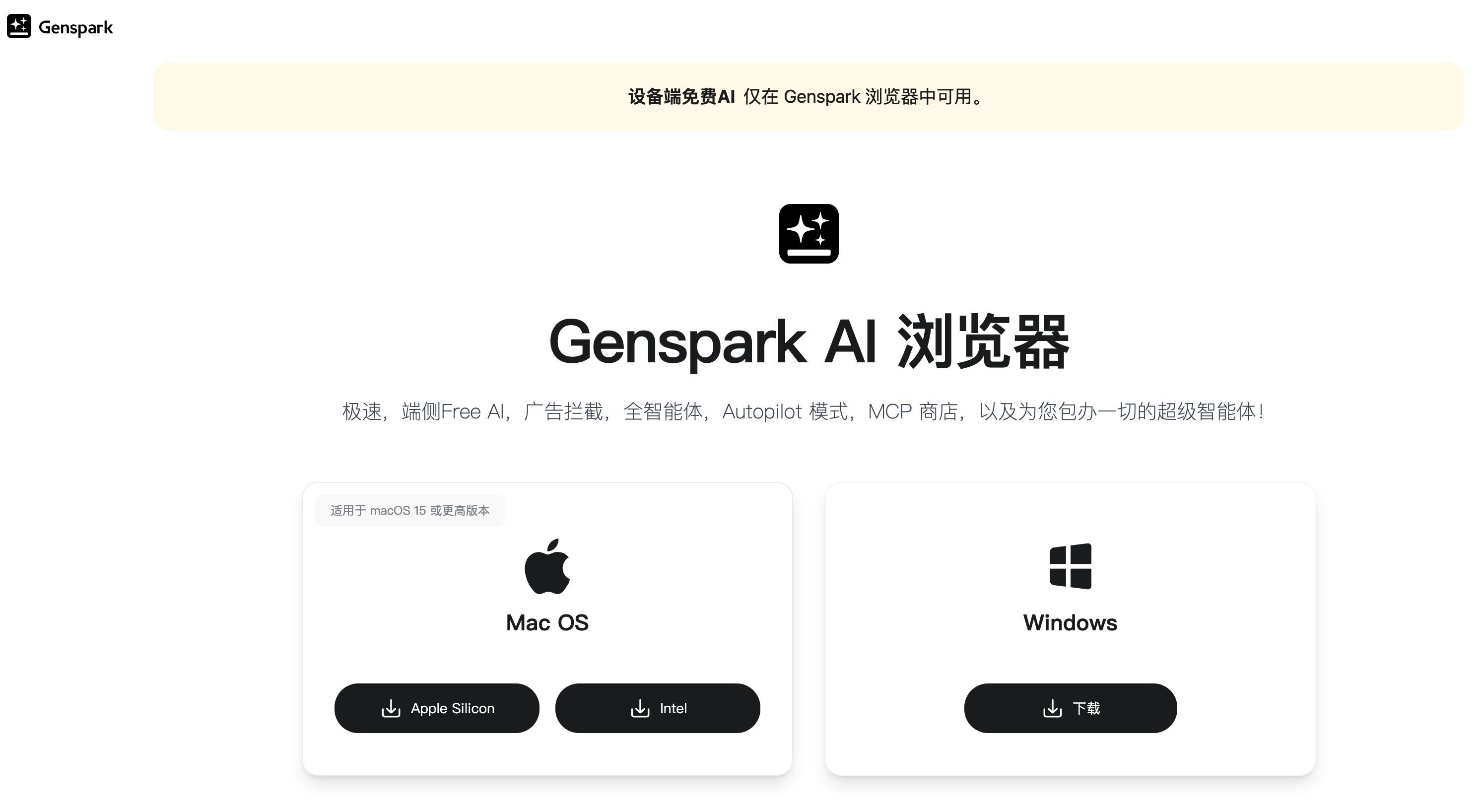 Genspark AI 浏览器正式发布,支持本地运行开源模型