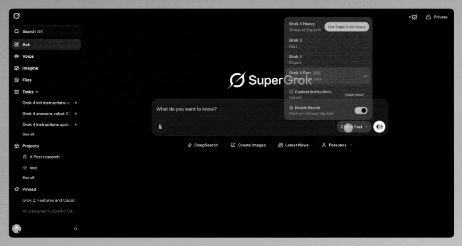 该模型据称是 Grok 4 的加速版,已在 Grok 网页端、iOS 应用以及 X 平台上向部分用户推送。
