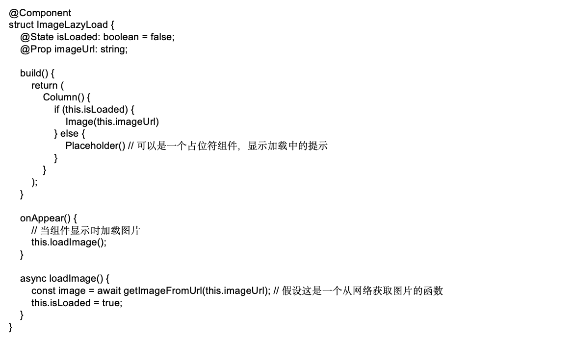 在这个示例中,图片只有在组件显示时才会被加载,而不是在应用启动时就加载所有图片,从而缩短了启动时间。