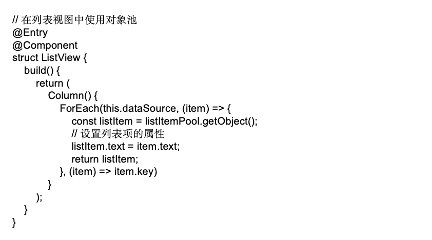 在这个示例中,通过对象池实现了列表项对象的复用,减少了频繁创建和销毁对象带来的内存开销。
