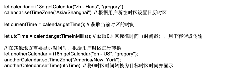 · 始终使用正确的时区设置。在获取和显示时间时,确保日历对象的时区设置与用户所在时区一致。可以通过获取系统时区或让用户手动选择时区来设置日历对象的时区。在存储和传输时间数据时,优先使用0时区标准时间(UTC或GMT),在显示给用户时再根据用户所在时区进行转换。例如: