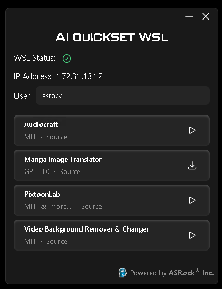 华擎发布 AI QuickSet WSL,在 Windows 下执行 Linux AI Apps