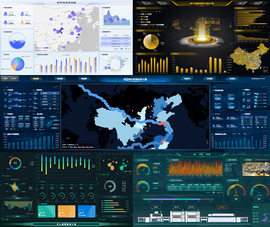 在零售、金融、智慧城市、智慧工厂等领域,它是业务价值的 “全景展示窗”,将企业实力转化为 “数据风景”,也是 “高效沟通桥”,整合各部门零散数据形成 “视觉共识”,消除 “数据隔阂”,使数据成为 “会说话的决策助手”。根据《2024 年数据可视化行业发展报告》,采用数据可视化大屏后,企业决策效率平均提升 30%。例如,某零售企业通过数据可视化大屏实时监控各门店的销售数据、库存情况以及顾客流量,管理者能够迅速发现销售异常的门店,并及时调整营销策略,使得该门店的销售额在一个月内提升了 15%。