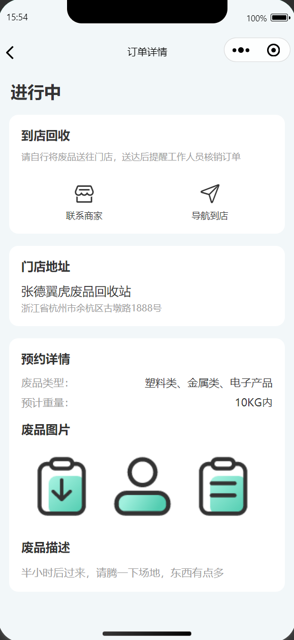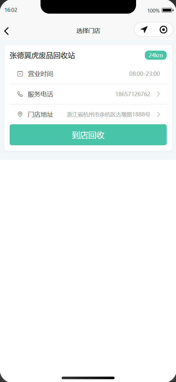 入驻后,用户将可以根据所在城市为纬度,根据用户当前定位进行附近商家推荐,方便进行预约上门回收,或者用户自行到店回收。