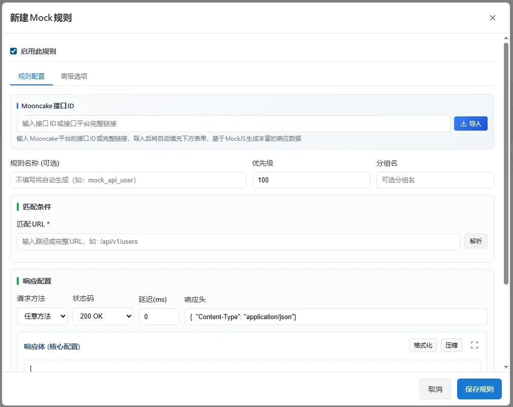 - 在排查某个环境问题,需要根据服务端接口返回数据复现的时候,可以通过在管理规则页面手动新建。