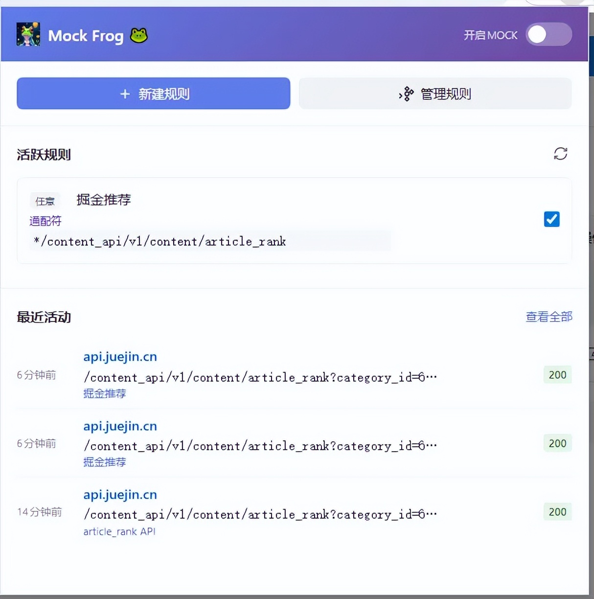 - 点击浏览器工具栏中的 Mock Frog 图标;