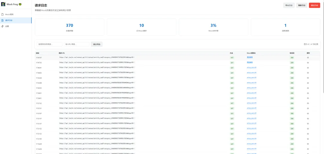 作用:记录所有 Mock 请求的详细信息,便于调试。
