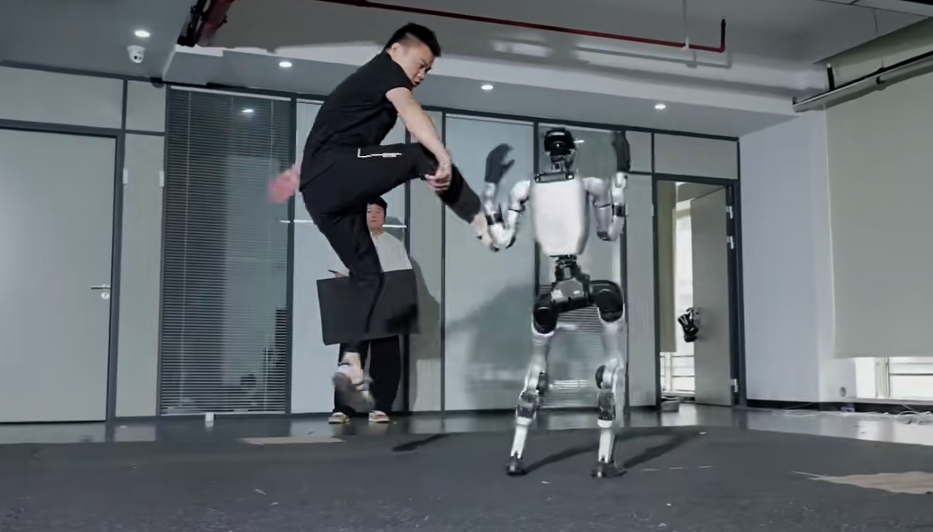 宇树科技发布最新视频展现了人形机器人G1最新的训练成果。在官方发布的视频中,多位成年男子对G1进行“围殴”,G1遭遇了飞踢、横踹,并被工作人员用椅子推倒。