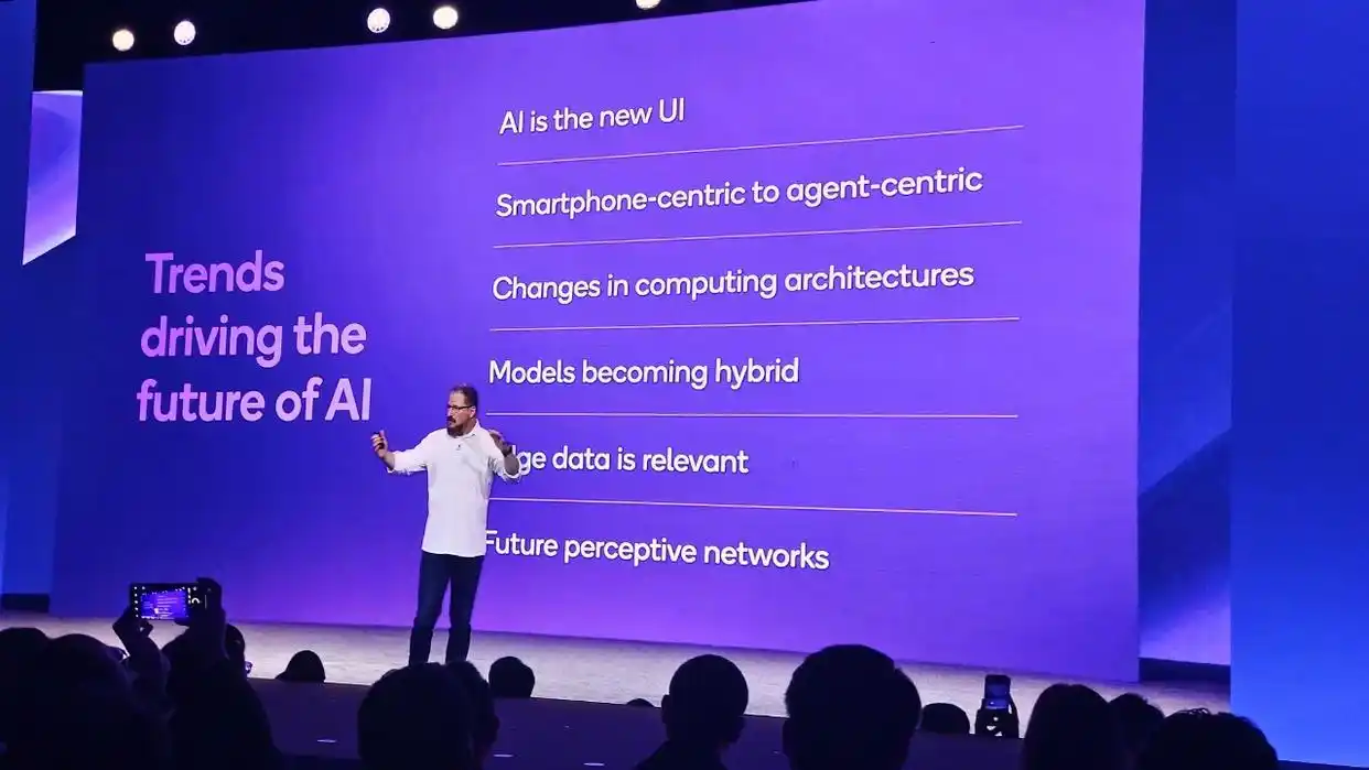 安蒙在演讲中就强调,我们正在见证个人计算的一次重大转型:AI 正在成为新的 UI(用户界面),重点围绕着用户体验,能够理解设备上下文内容,覆盖文本、语音和图片等多模态,而未来的操作系统将由智能体构成。