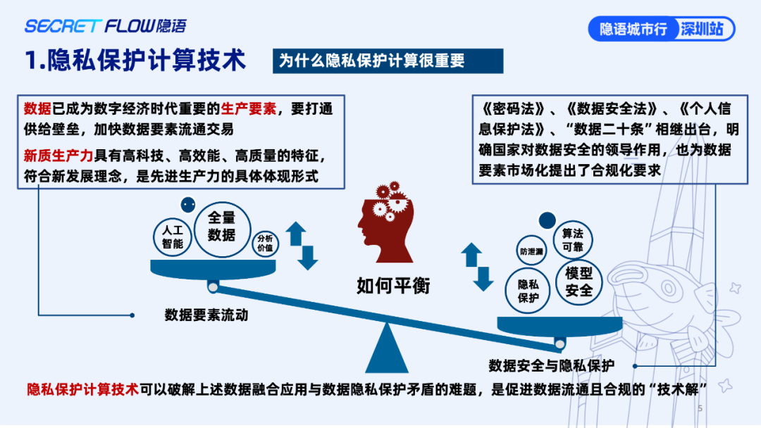 隐私保护计算,正是为了破除这张不平衡,即数据流动、交易、利用和开发,与数据隐私保护之间矛盾的不平衡,实现数据利用与隐私保护的双赢。