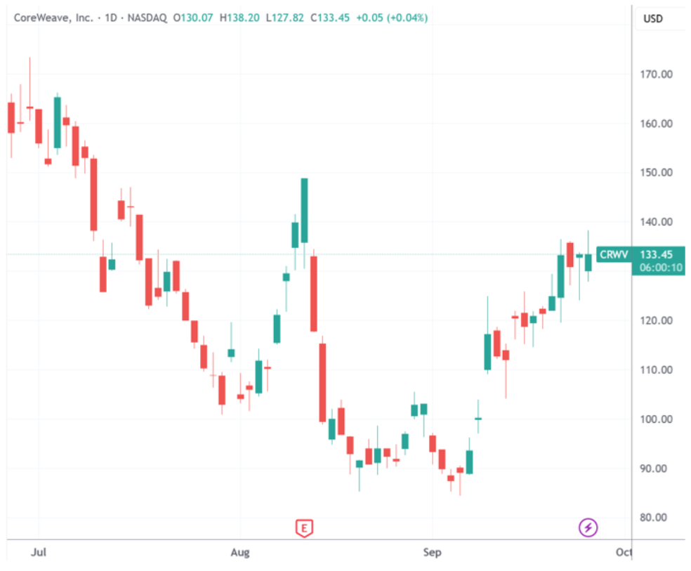 CoreWeave,这家被广泛认为是英伟达 “亲儿子” 的新兴公司,其股价自9月初以来已经累计上涨了约50%。在市场上引起了极大的关注。虽然在最新公告发布前,CoreWeave 的股价一度下跌超过6%,但随即便因消息的发布迅速回升。