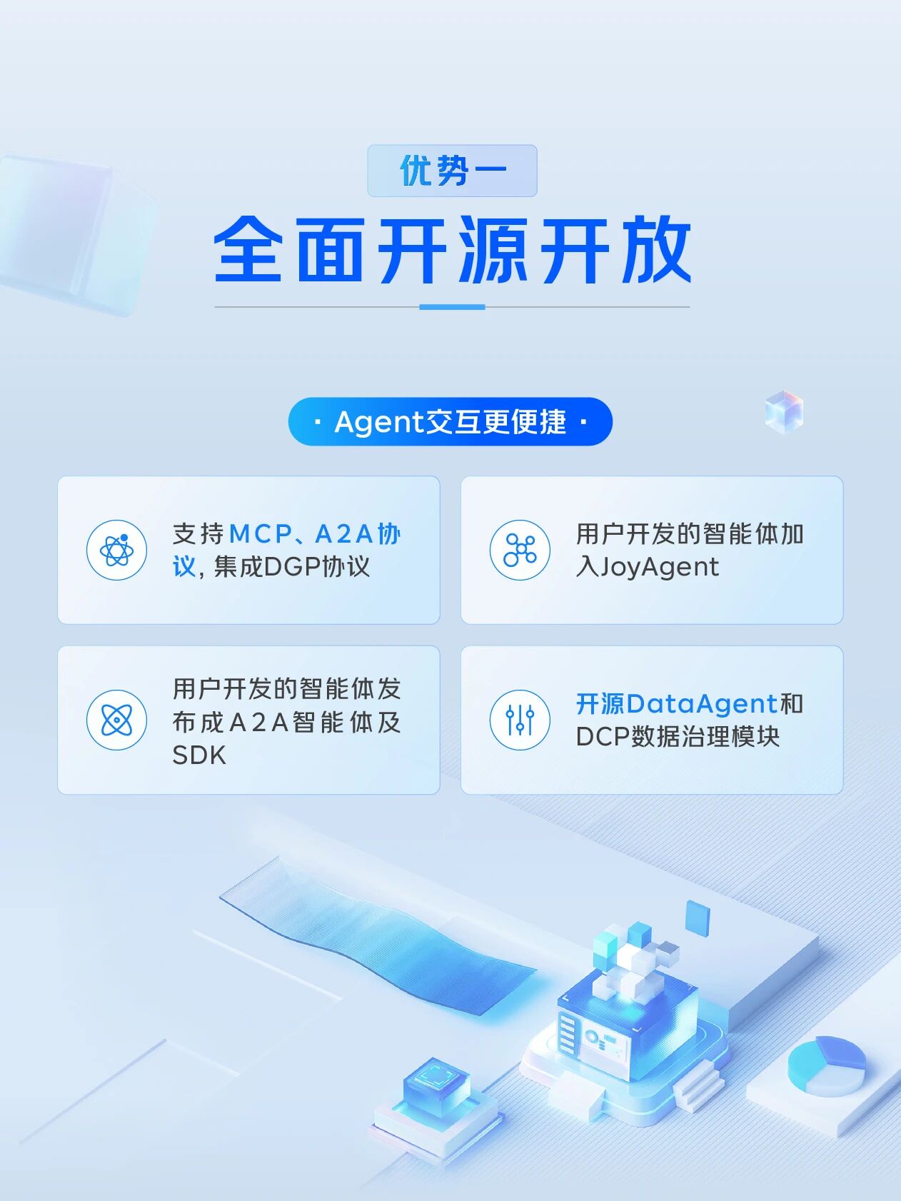 JoyAgent 3.0已全面开源,并在GAIA全球榜单上登顶(测试集准确率超过67%)。其内置的DataAgent可无迁移地分析多模态数据,支持TEXT2Workflow、MCP/A2A协议,能够无缝对接ERP、CRM等核心系统。