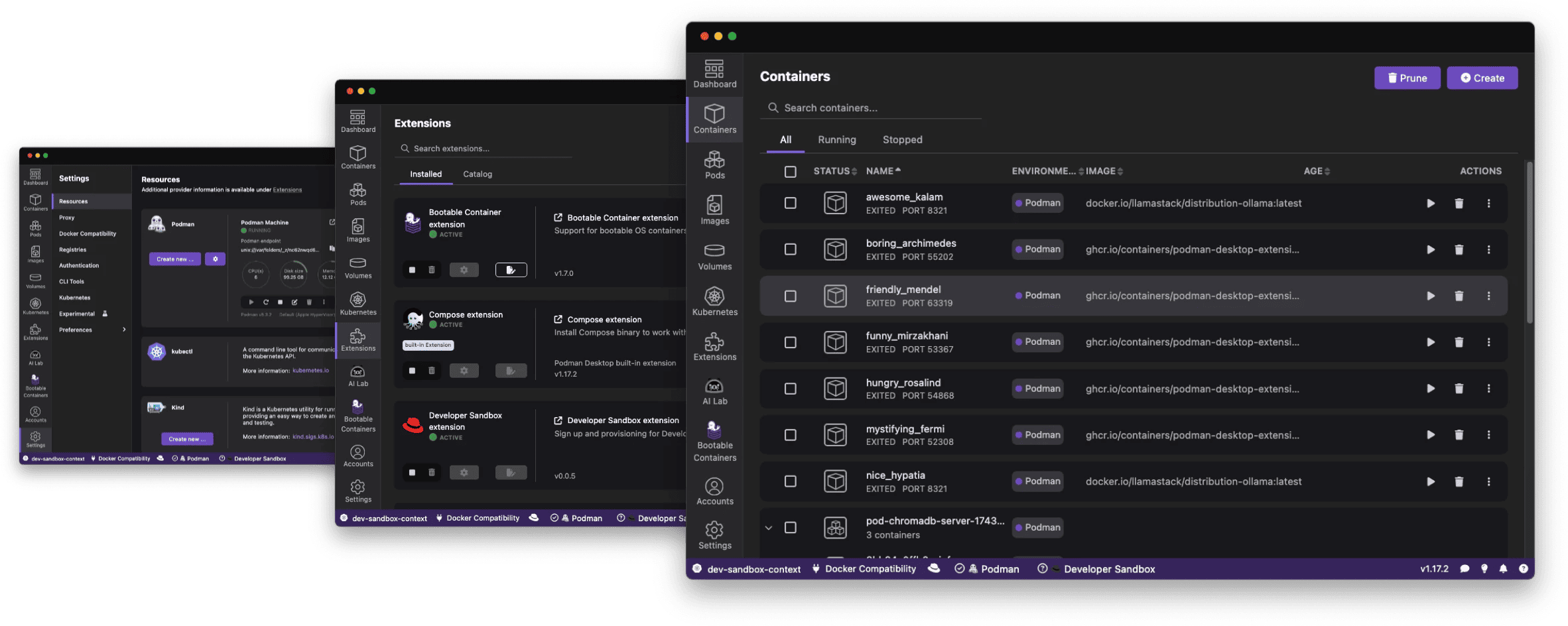 37、podman-desktop:免费开源的容器桌面管理工具。这是一款跨平台、免费开源的容器与 K8s 桌面管理工具,为容器和 K8s 的构建、管理与部署提供了直观易用的桌面界面,支持 Podman、Docker、Lima、kind 等主流容器。