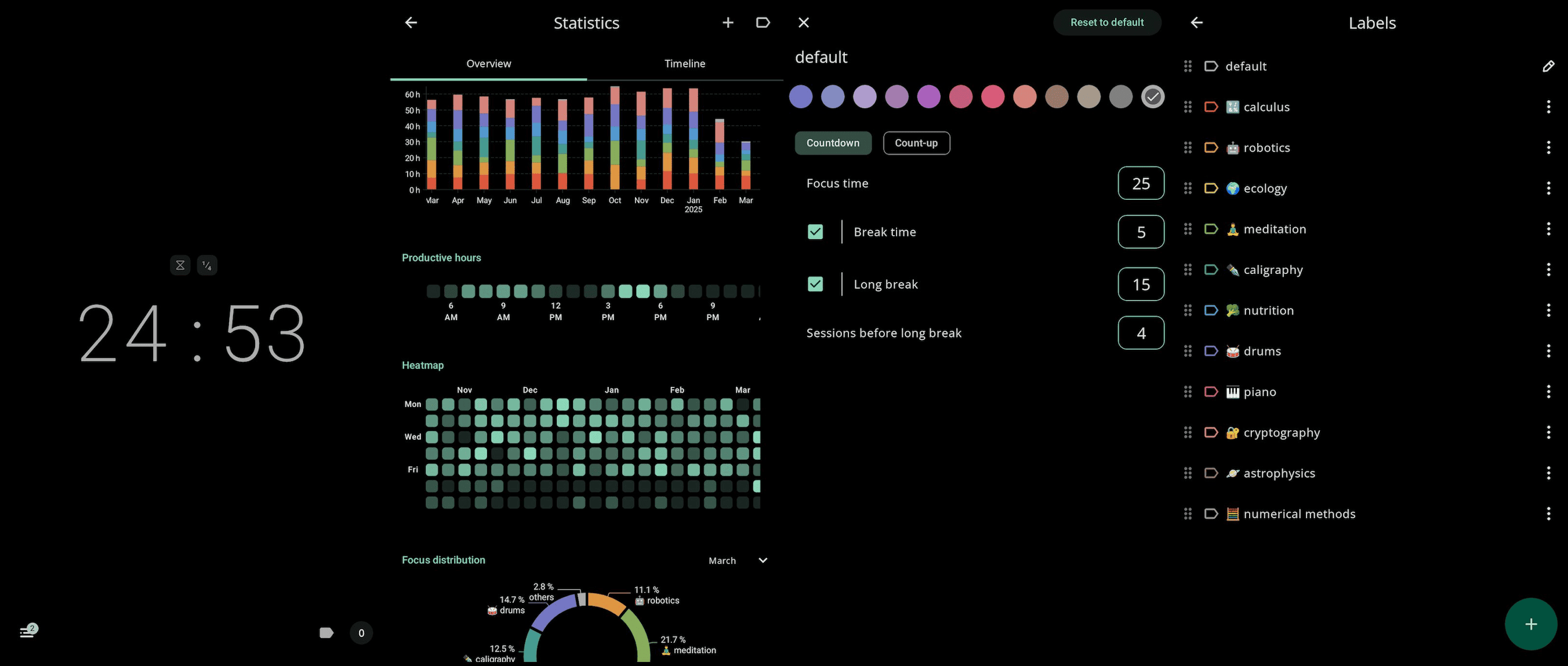 19、goodtime:极简省电的番茄时钟工具。这是一个开源的 Android 时间管理工具,基于番茄工作法帮助用户管理时间、提升专注力。它无广告、无追踪、完全离线,支持历史记录、彩色标签、热力图统计、专注/休息比率、自定义样式等功能。来自 @ewiro 的分享