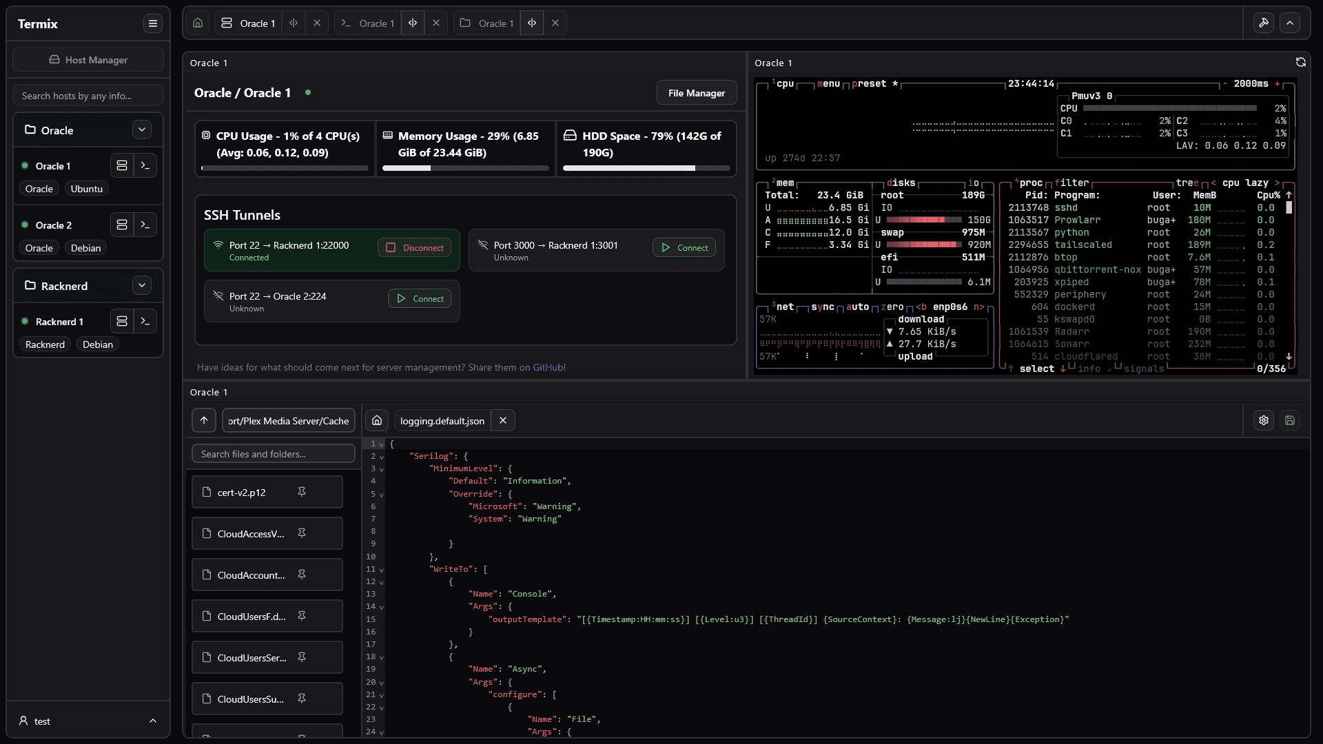 17、Termix:高颜值一站式服务器管理平台。这是一个基于 Web 的服务器管理平台,集成了 SSH 终端、SSH 隧道、服务器监控和文件管理等功能。它完全免费开源、可自托管,支持自动重连、文件上传、分屏显示和语法高亮等特性。来自 @DeShuiYu 的分享