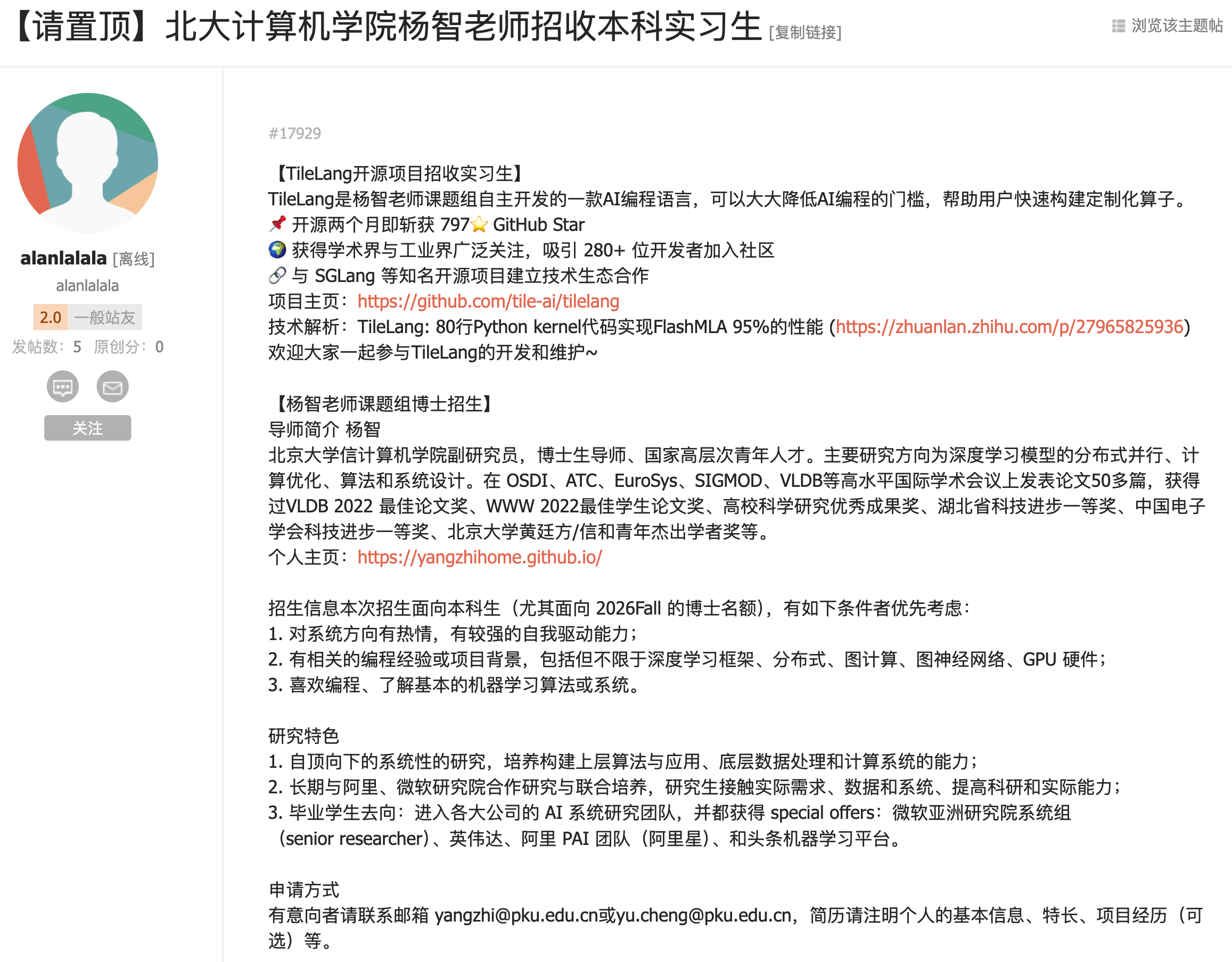 TileLang 由北大团队主导开发,核心人物除了王磊、董宇骐,还有北大计算机学院的副研究员、博士生导师杨智。