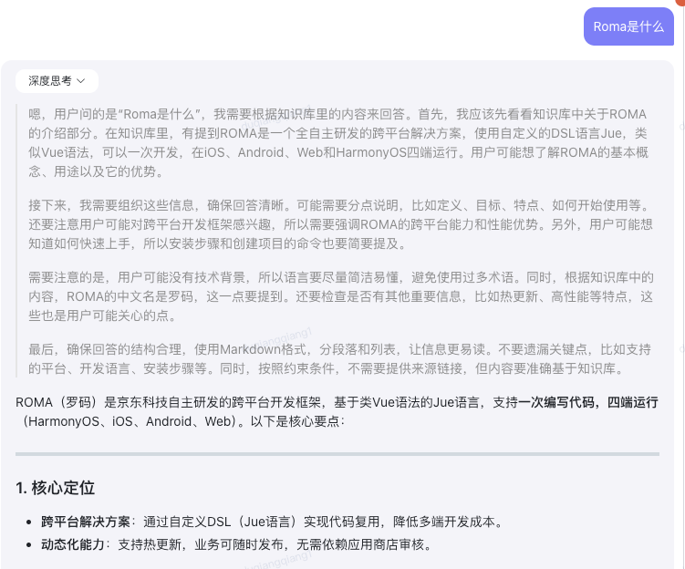 [段落] ROMA 是一个全自主研发的前端开发基于自定义DSL(Jue语言),一份代码,可在iOS、Android、Harmony、Web四端运行的跨平台解决方案。