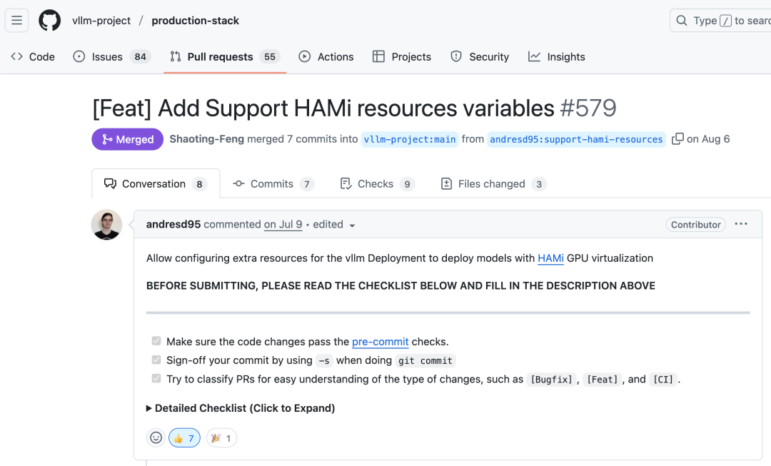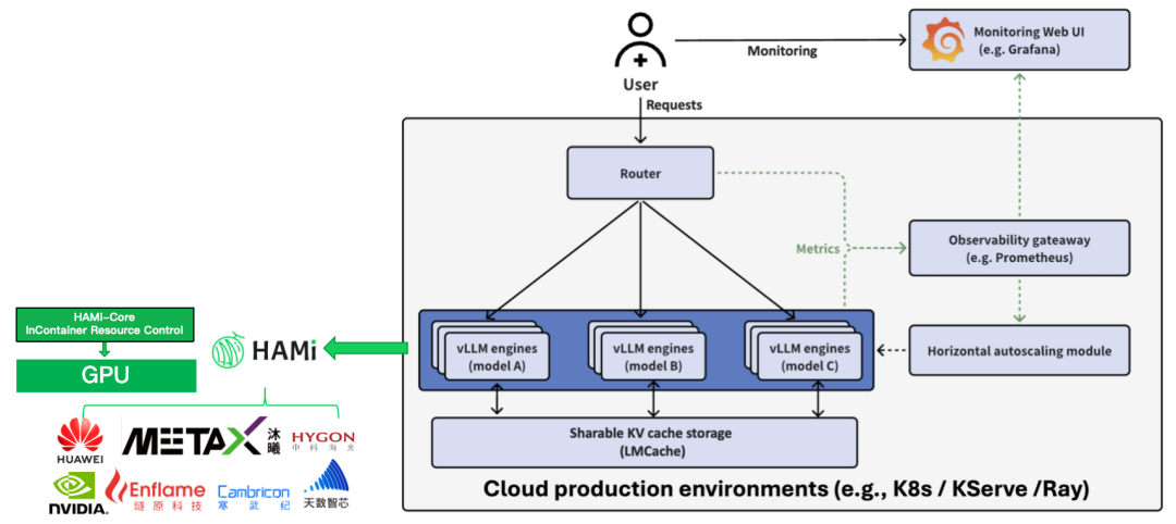 此外,vLLM 社区近期正式合并了 [PR #579: Feat - Add Support HAMi Resources Variables],使 vLLM 原生支持 HAMi 。这意味着用户在运行 vLLM 时,可以直接基于 HAMi 的虚拟化与调度能力配置资源,进一步降低集成成本,提升兼容性与易用性。