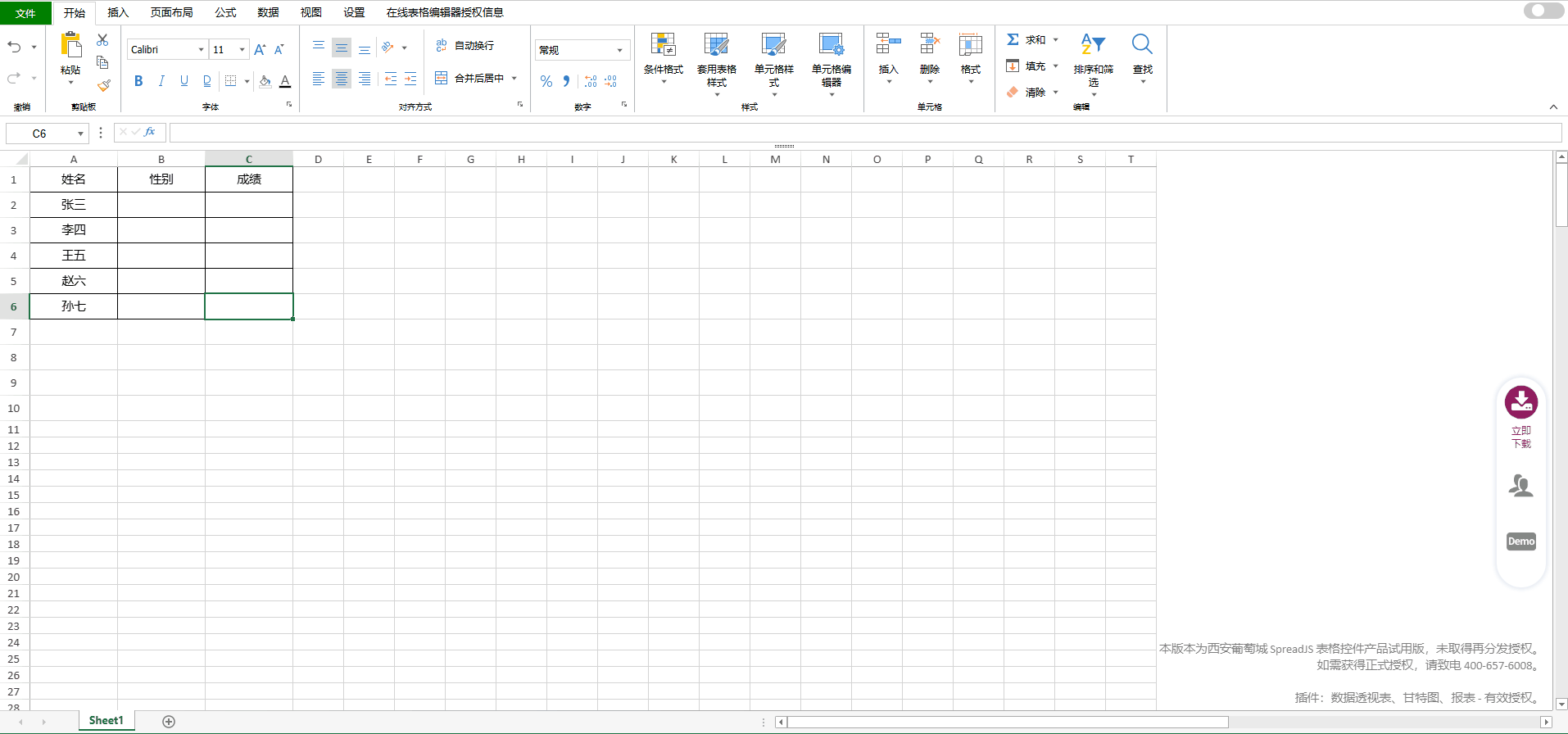 最近有同学咨询了这样一个场景,用户需要在表单中填写成绩表,A列为姓名,B列为性别,C列为成绩。