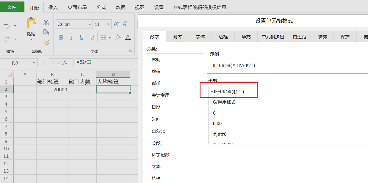 需求2:在使用Excel处理数据时,公式错误的情况不可避免出现。在不改变公式本身的前提下,可以借助自定义单元格格式实现不显示错误值。 针对此需求,可以结合IFERROR函数来包裹错误值,并设置实际格式为空字符串:
