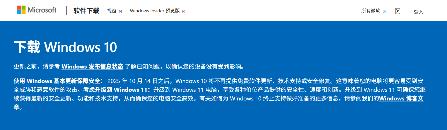 微软宣布将于2025 年 10 月 14 日起,停止对 Windows 10 系统提供安全更新和技术支持,这意味着大量用户的电脑可能更容易遭到网络攻击。