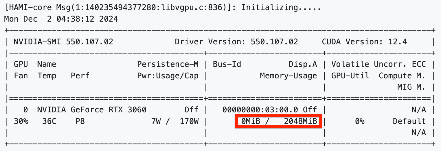 nvidia.com/gpumem: 1024 # 每个 vGPU 包含 1024MB 设备内存