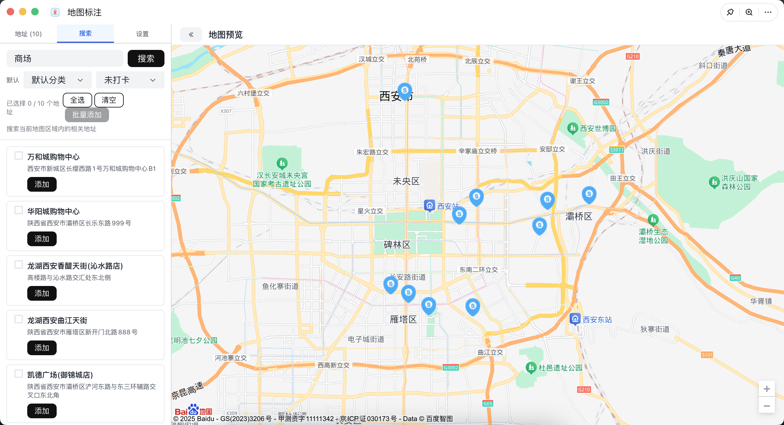 地图标注工具,支持地址搜索、标记管理和标签分类