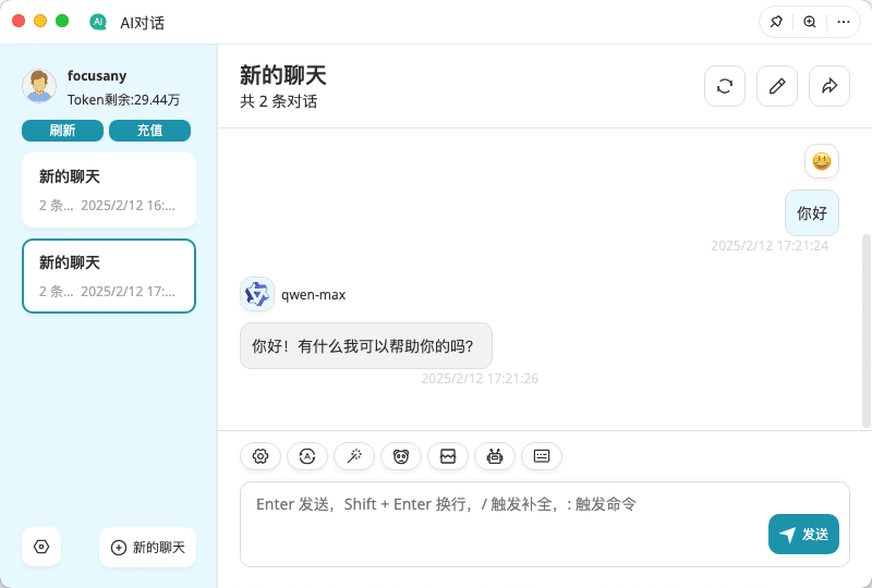 FocusAny提供多种模型支持的AI对话插件,包括 DeepSeek、通义千问。