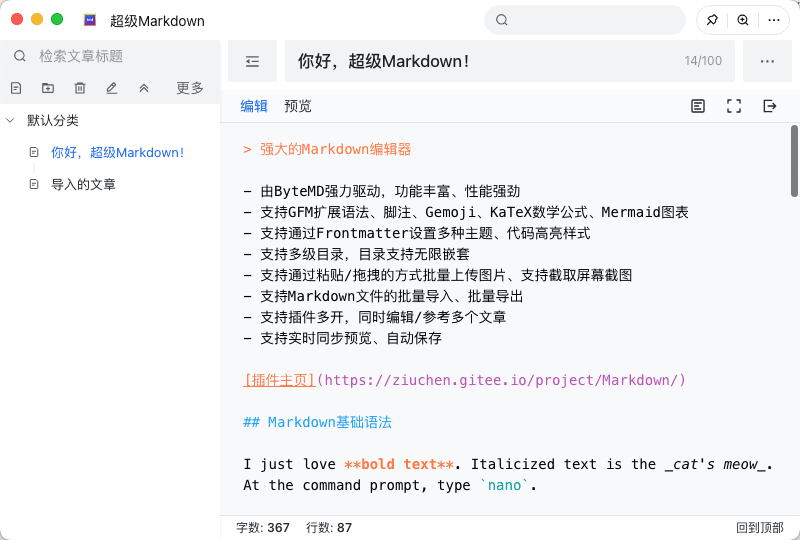 支持 Markdown 所有基础语法、数学公式