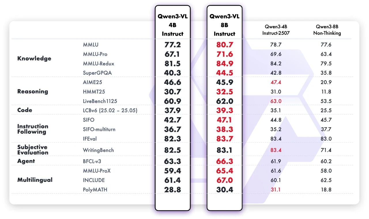 - 在缩减尺寸的同时,完整保留了 Qwen3-VL 的全部核心功能。