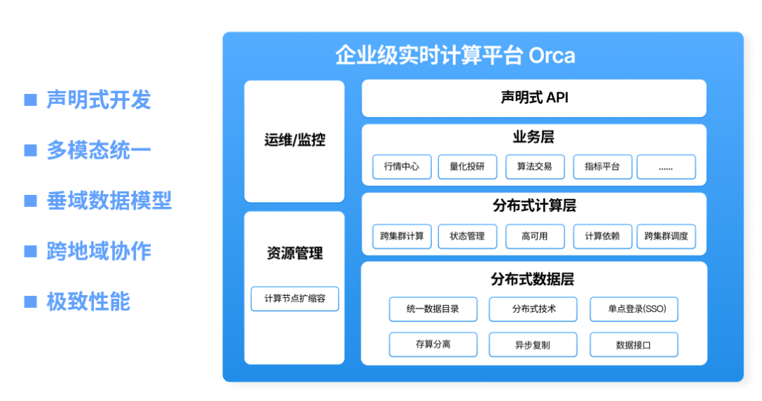- Orca是DolphinDB推出的企业级实时计算平台,通过简化流计算任务的开发流程,支持多模态数据的统一处理,并提供针对金融等行业的专用数据模型,实现了企业级高可用性和跨地域协同计算。这一平台使得开发者能够以声明式方式描述流计算需求,自动生成计算图并智能规划资源,从而显著降低开发和运维的复杂性。Orca为企业在量化投研、物联网监控等场景提供了强大的实时计算支持。