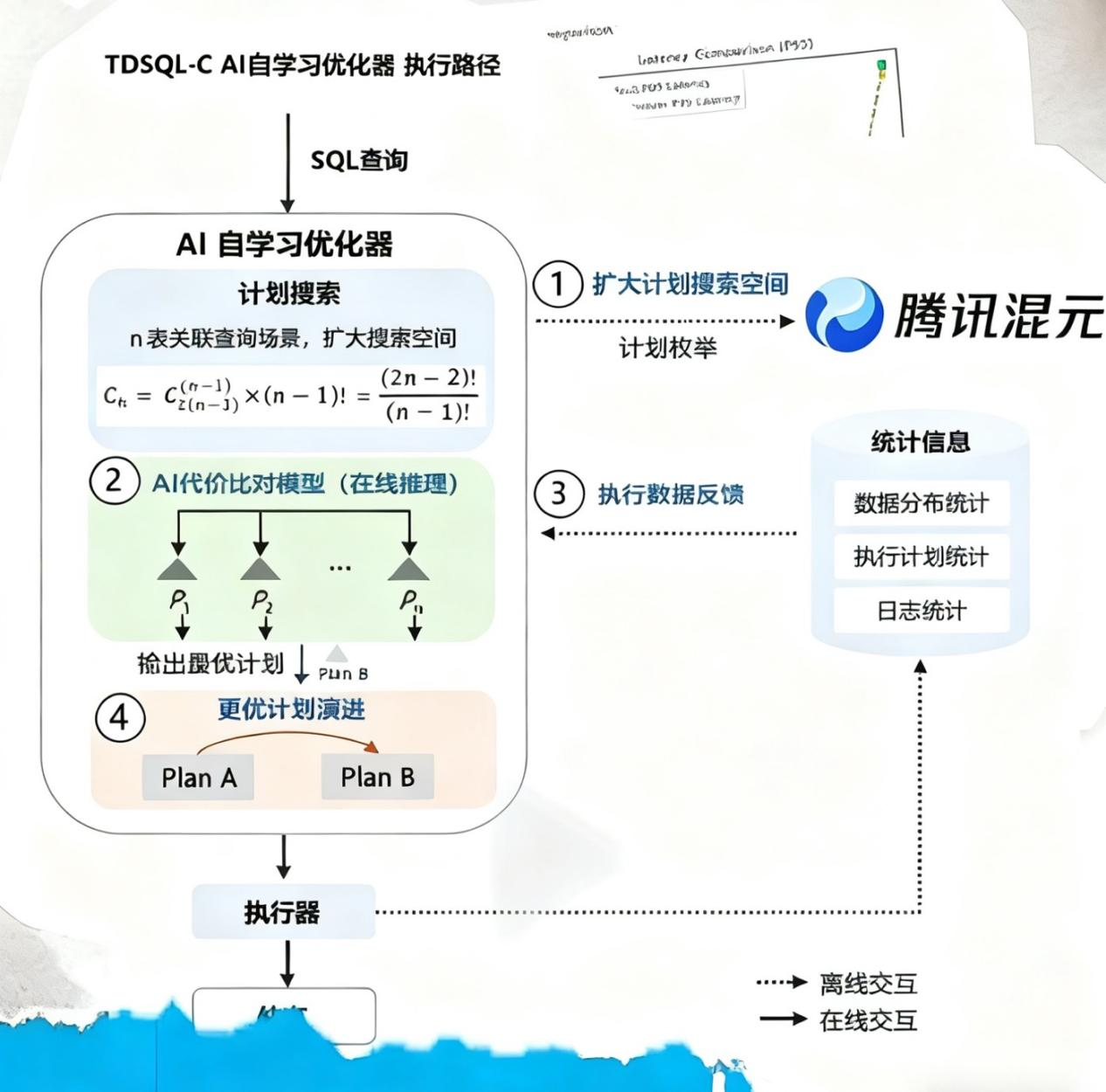 - 腾讯云还推出了行业首个AI自学习优化器,突破传统优化器在复杂场景中的局限性。AI自学习优化器通过全局探索最优执行计划、可量化的数据反馈、动态适配代价模型,和反思演进这四大能力,让复杂查询时延降低80%以上。凭借这一创新,客户无需人力投入,即可实现数据库的自动调优。