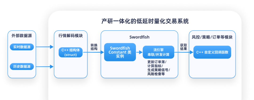 C++程序设计,内含DolphinDB自研的计算内核,拥有超过2000个函数和流计算引擎。它通过在本地硬件上直接执行计算,避免了网络访问服务器的延迟,实现了十微秒甚至单微秒级的计算延迟,显著提升了高频计算任务的性能。Swordfish目前已支持C++和Java,未来还将推出Python版本。