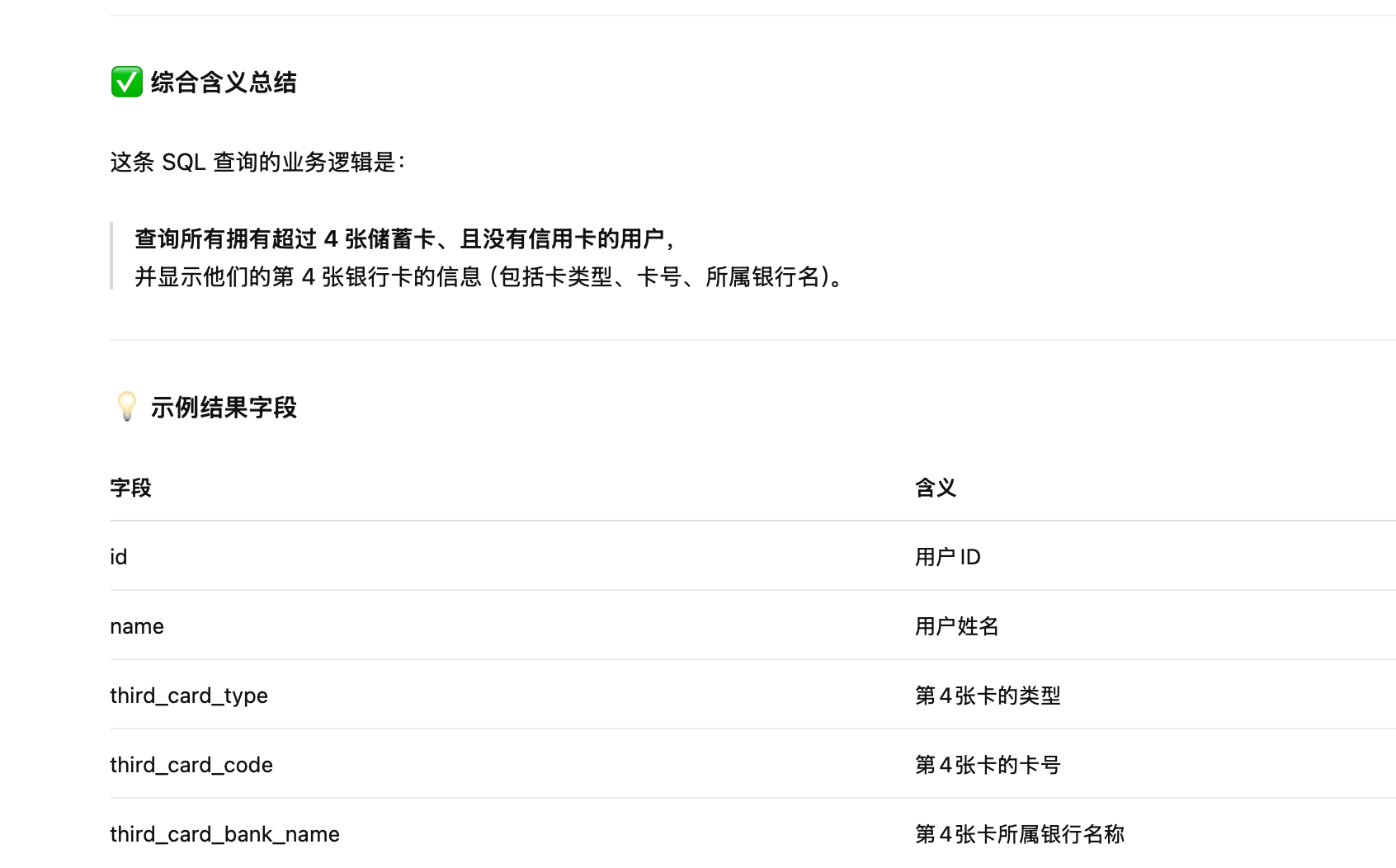好的我们再把sql交给ai重新开启一个会话看看他会怎么回答