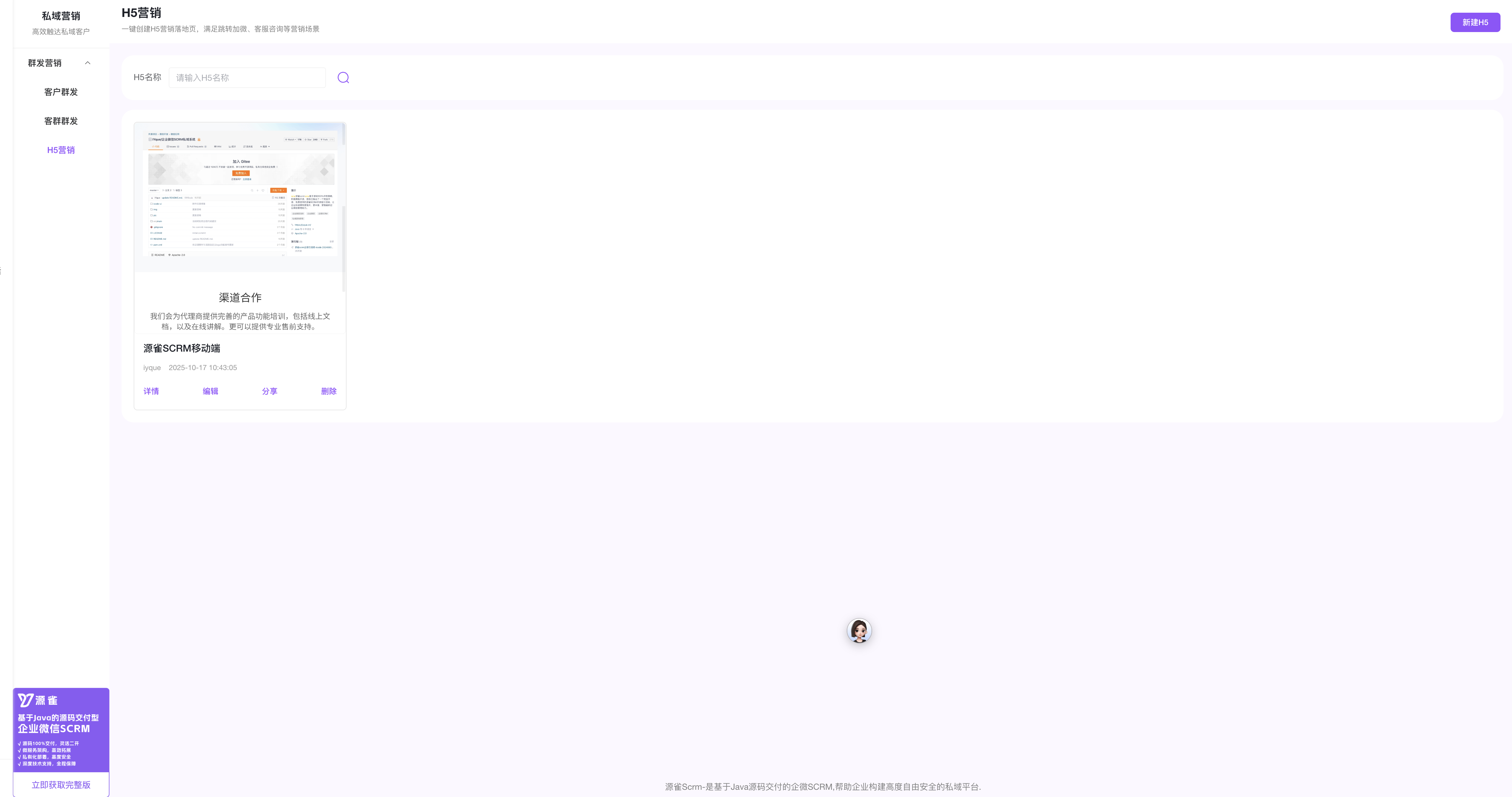 源雀 SCRM AI 开源版升级:h5 营销