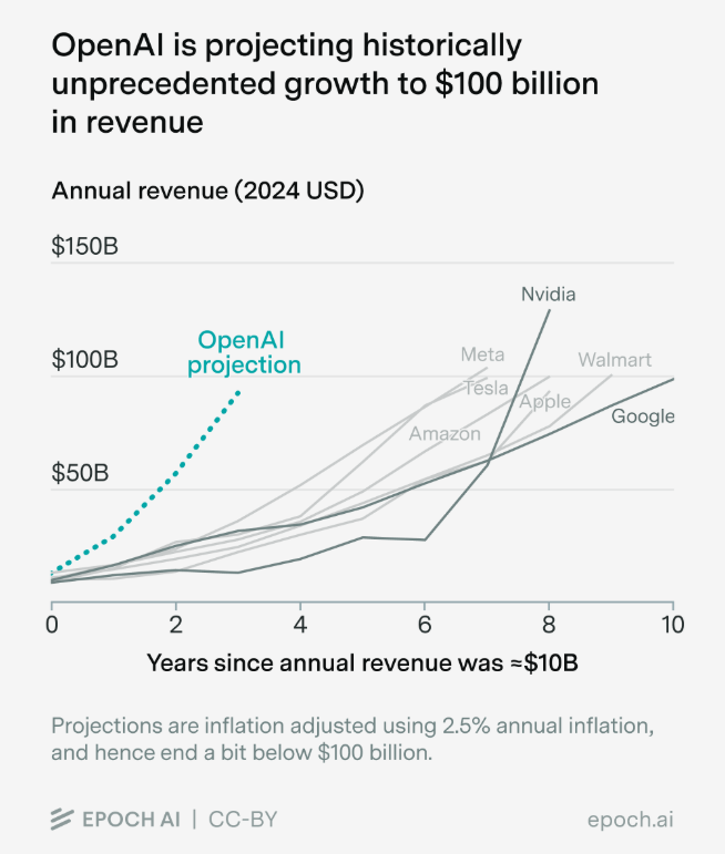 Epoch AI 指出,OpenAI 的收入目标将为美国人工智能行业的增长树立一个全新的先例。
