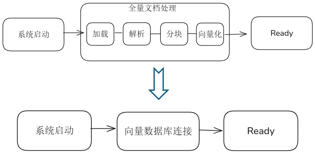 原先:系统启动-->全量文档加载(文档解析、分块、向量化)-->启动完毕