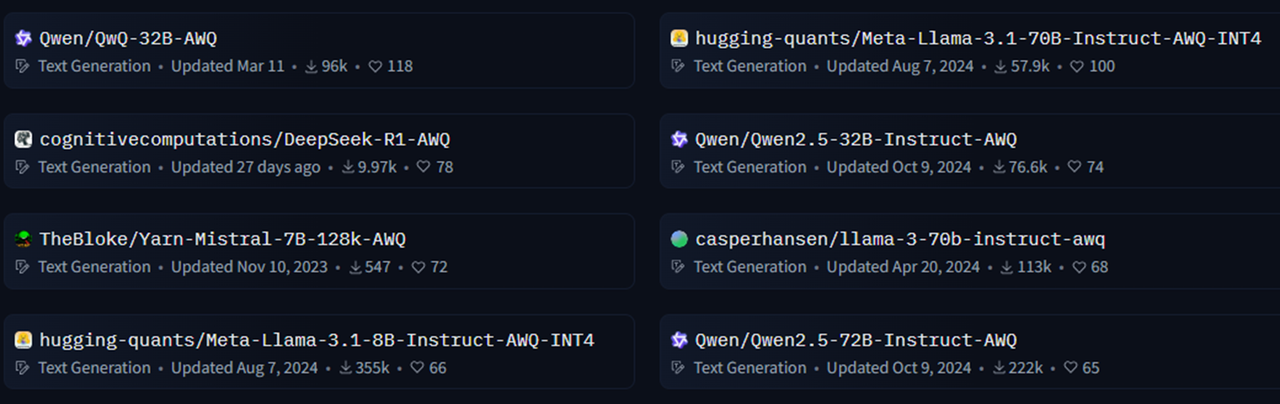 在模型开源社区中,开发者可以轻松获取大量优秀的量化模型。