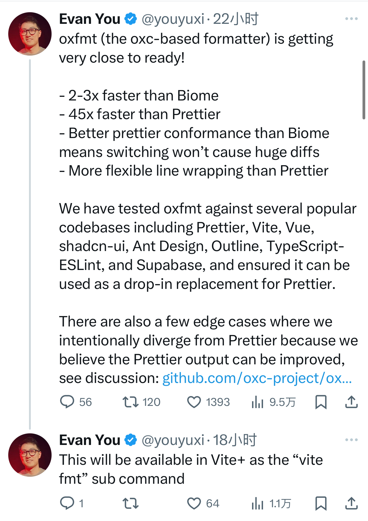 尤雨溪宣布 oxfmt 即将发布,比 Prettier 快 45 倍