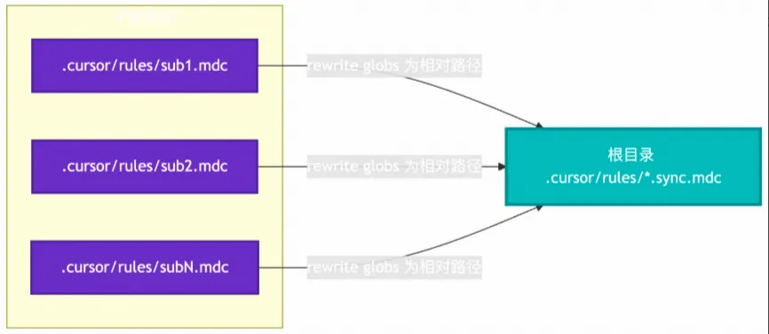 // 相对路径注入 + 目标文件聚合为 .sync.mdc