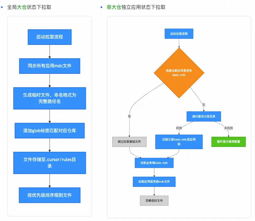 通过识别应用是否是大仓应用,便于后期进行不同类型应用的业务逻辑处理,如知识库同步在大仓下和单仓下的不同分支逻辑是不同的。大仓下子仓的规则会被自动聚合到顶层.cursor/rules下,实现规则命中率显著提升。