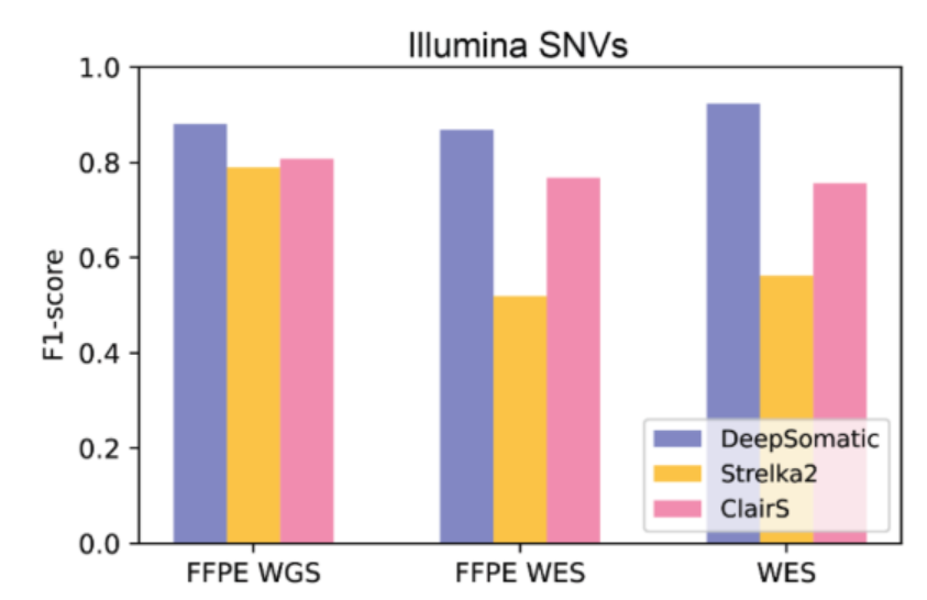 DeepSomatic 采用了一种针对癌症基因组的小型变异调用器,能够兼容 Illumina 短读段、PacBio HiFi 长读段和 Oxford Nanopore 长读段。这一方法在 DeepVariant 的基础上进行了扩展,能够检测单核苷酸变异(SNV)和小插入缺失(indels),支持肿瘤 - 正常和肿瘤单一工作流程,包括福尔马林固定石蜡包埋(FFPE)模型。
