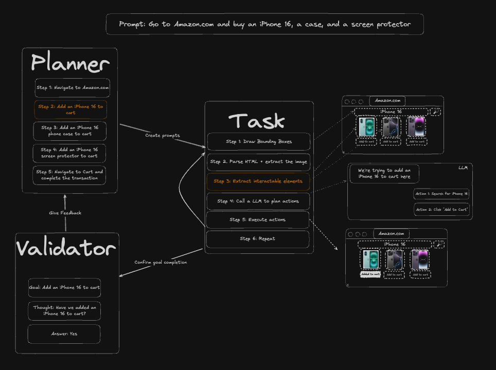 Skyvern 使用一群代理来理解网站,并计划和执行其操作: