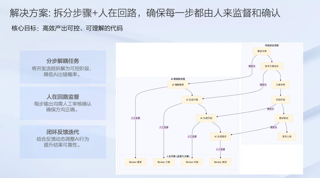 传统大模型处理代码理解时,存在两大痛点:一是 “原料不精准”,语义化搜索或关键词匹配易引入无用信息,导致上下文溢出;二是 “流程繁重”,面对几十万行代码,分段落阅读难以覆盖所有关键节点。字节跳动服务框架团队研发工程师尹跃然给出Deep Code Research,通过模拟人工读码逻辑,从起始节点向深层探索,仅保留有用信息,同时拆解任务,如将 “找所有 API” 拆分为 “找 API 列表→查每个 API 详情”,降低模型注意力负担。