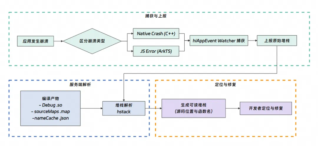 至此,我们完整地描绘了鸿蒙平台上从最底层的 Native 异常到最上层的 ArkTS 异常的全链路解析原理: