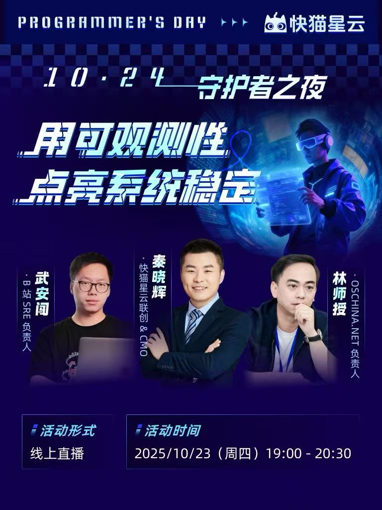 又是一年 1024 ,由快猫星云主办的 1024 程序员节特别直播“1024守护者之夜:用可观测性点亮系统稳定”已于前一晚圆满落幕。