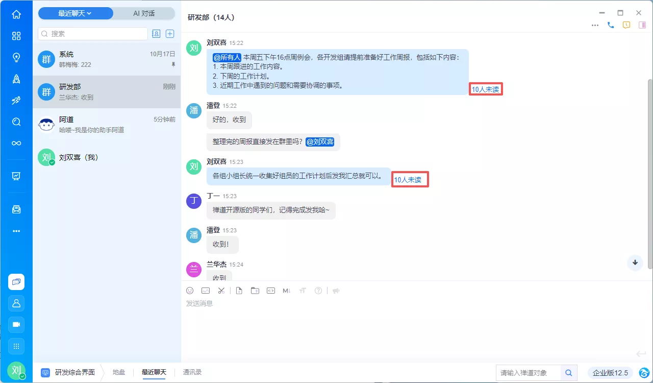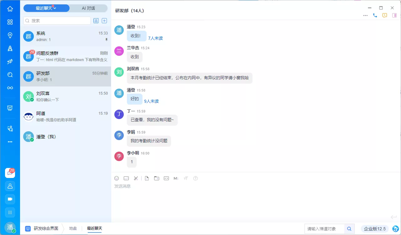 新版本客户端本次更新带来了全新升级的登录界面和大家期待已久的 新消息定位提醒功能,帮助您快速定位到最新消息,不再错过任何重要信息。新增 消息已读未读功能同时,支持快速查看消息的阅读状态,帮助团队及时跟进沟通进度。
