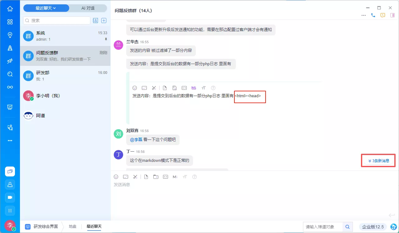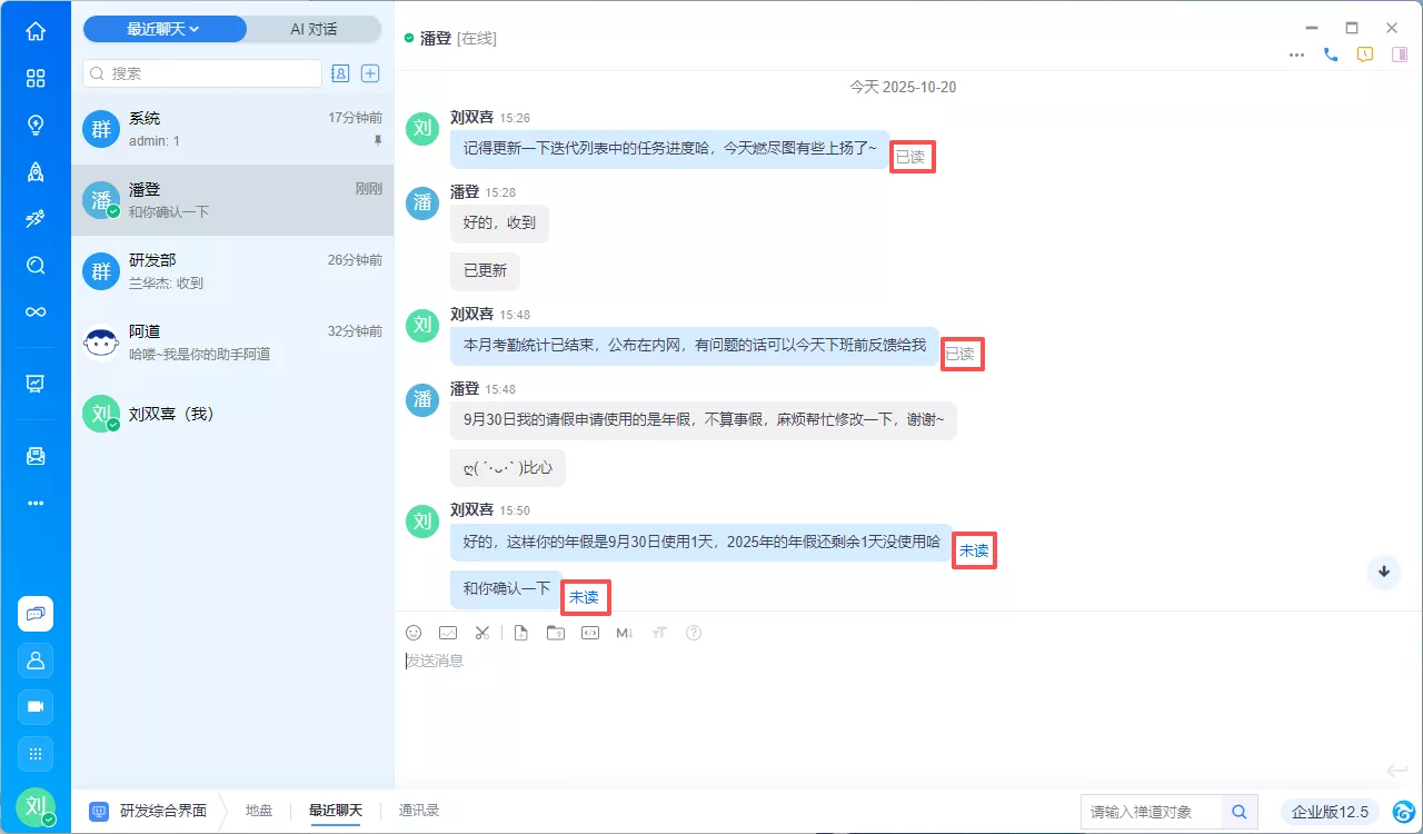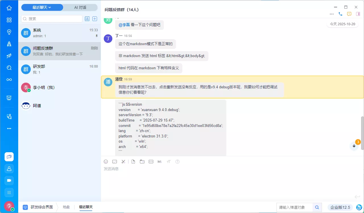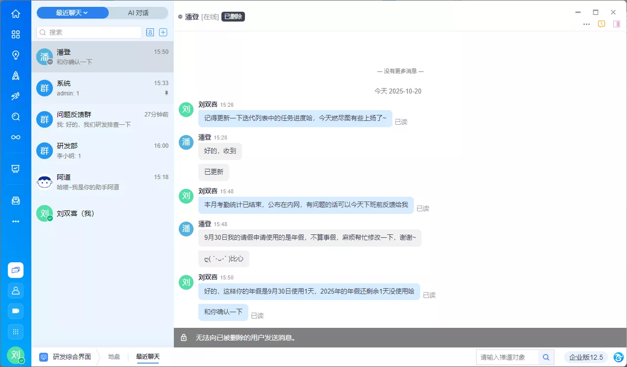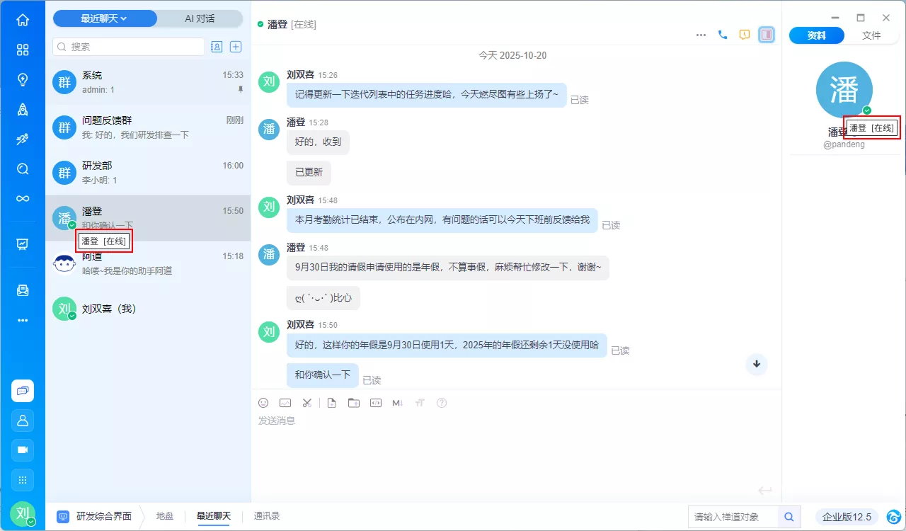 在用户管理方面,支持检索已删除人员的会话,方便查找和追溯历史会话内容。 新增用户在线状态提示说明,鼠标悬停即可查看详细状态,在线状态更清晰、沟通更顺畅。本次更新还修复了多项已知问题,完善若干细节,欢迎大家下载升级。