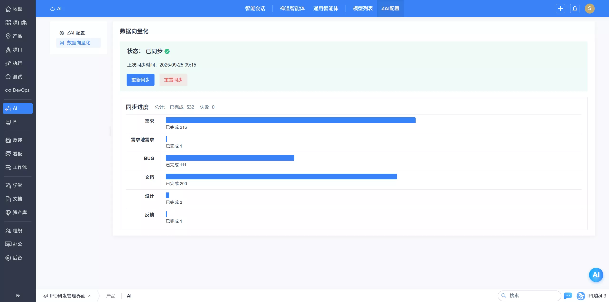 支持对禅道数据进行向量化,开启后,即可在智能会话中就向量化数据进行提问。