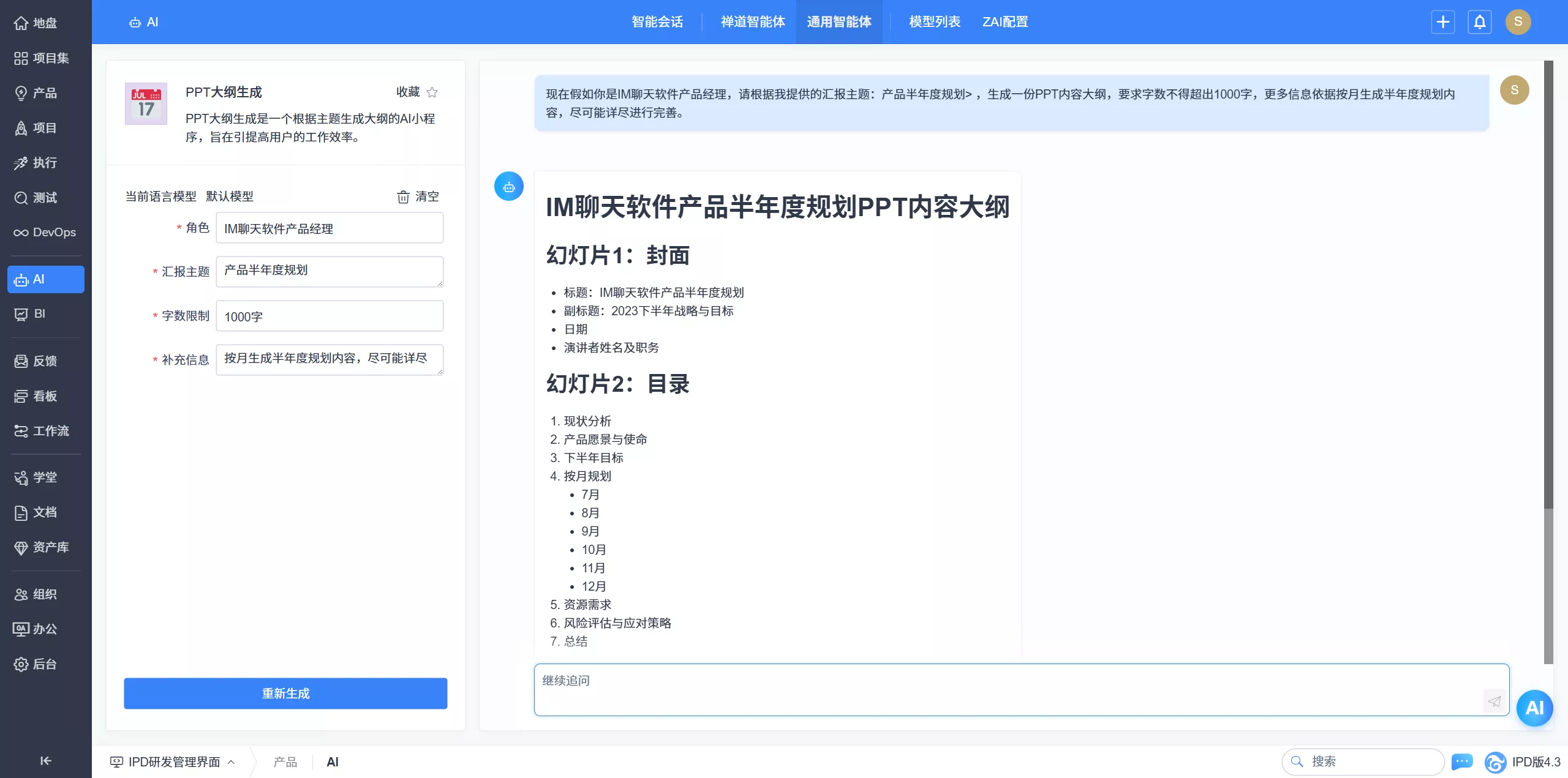 您可以通过左侧导航栏的“AI”模块,进入智能会话专属空间。在这里享受沉浸式的AI交流体验,轻松回顾历史对话,或开启一个全新的会话。